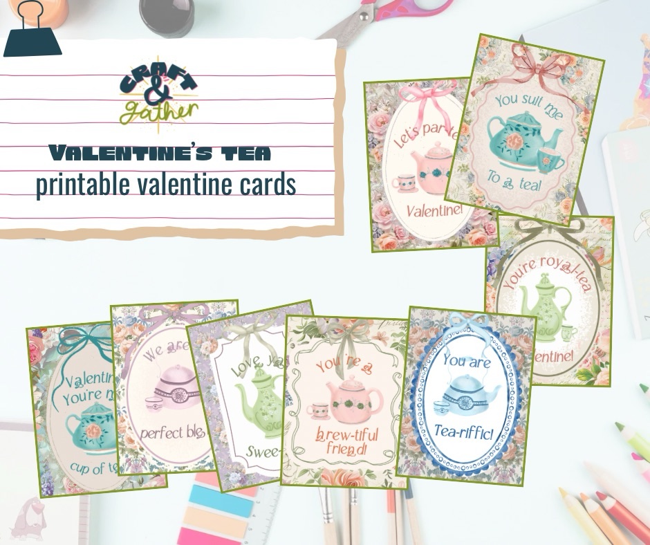Brew a little charm into Valentine’s Day with this elegant set of 8 printable tea-themed Valentines, designed with a soft vintage palette, regency-style florals, and classic teapots and teacups that feel straight out of a cozy afternoon tea party. 🫖🌸